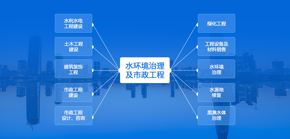 市政公用工程施工總承包壹級、裝飾工程專(zhuān)業(yè)承包貳級、屋房建筑工程施工總承包叁級、水利水電總承包三級