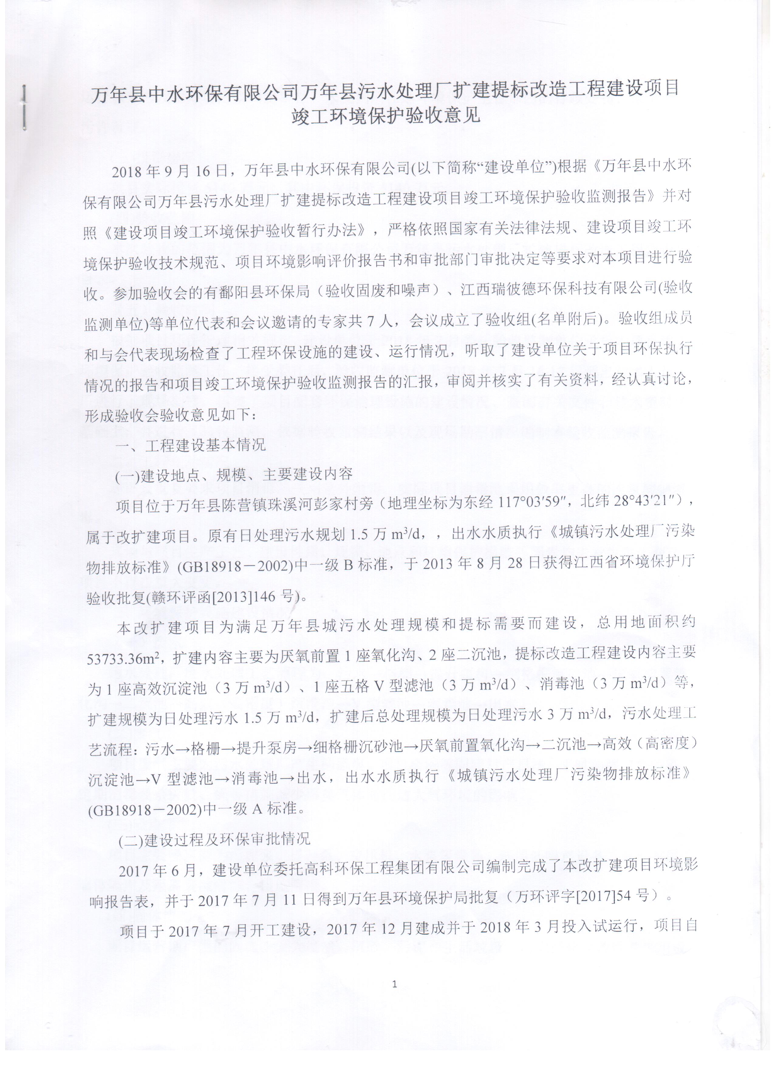 根據《國務(wù)院關(guān)于修改〈建設項目竣工環(huán)境保護管理條例〉的決定》(國務(wù)院令第682號),以及環(huán)保部《關(guān)于發(fā)布<建設項目竣工環(huán)境保護驗收暫行辦法>的公告》(國環(huán)規環(huán)評[2017]4號),現將萬(wàn)年縣中水環(huán)保有限公司萬(wàn)年污水處理廠(chǎng)擴建提標改造工程項目竣工環(huán)境保護驗收報告公示如下: