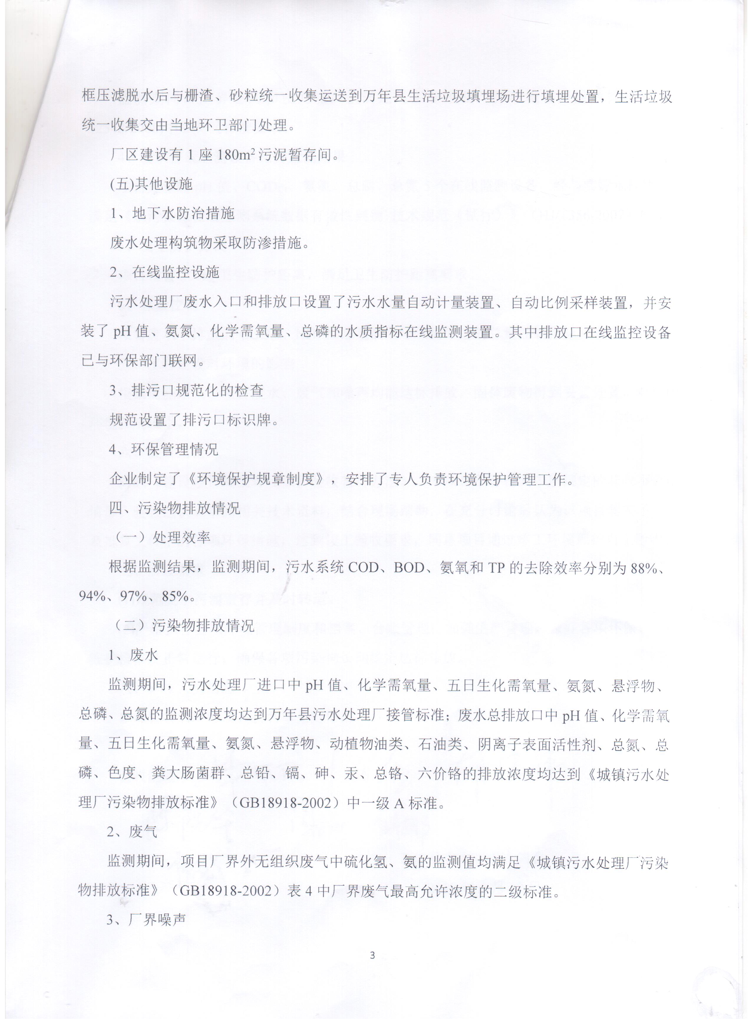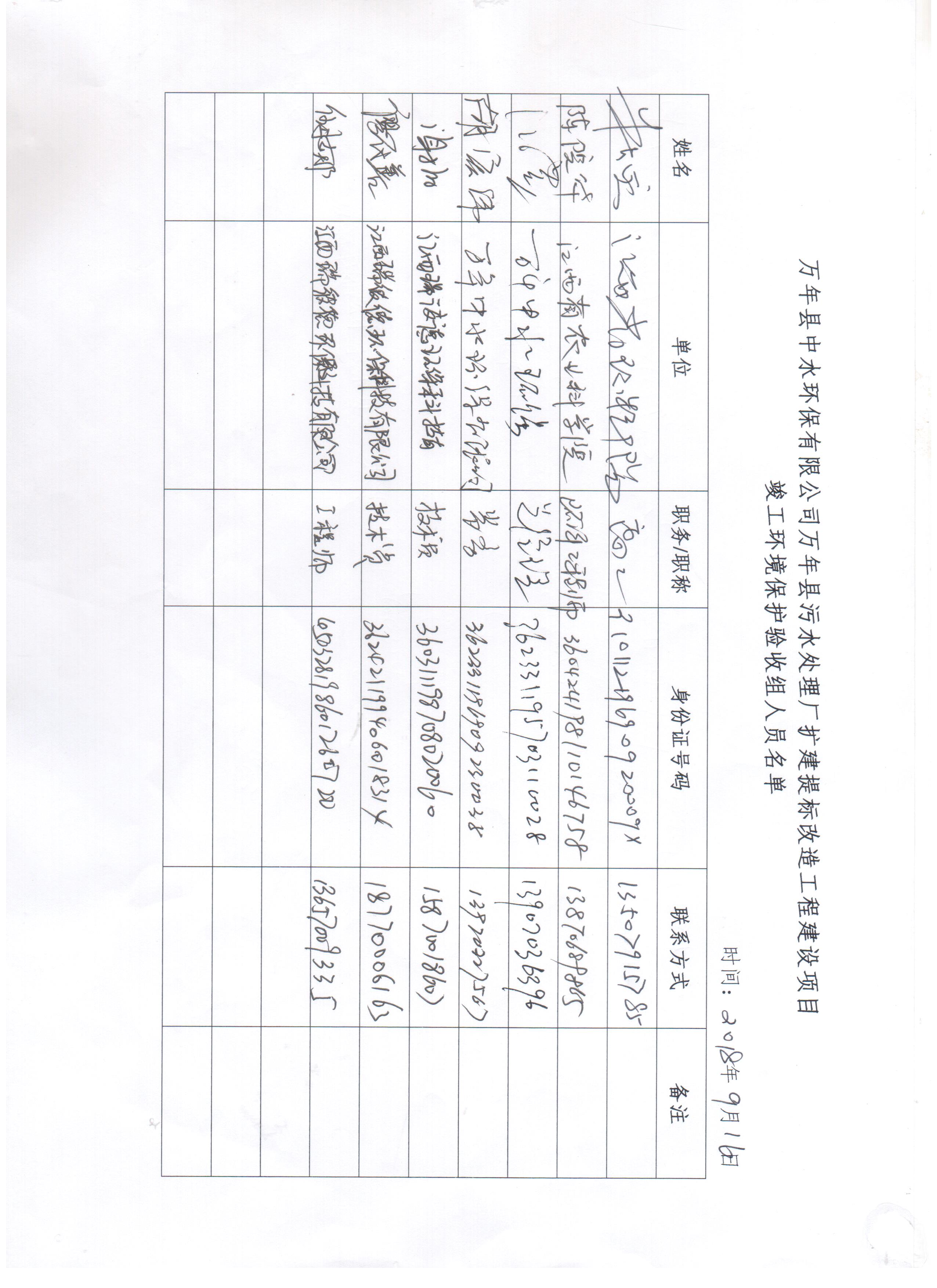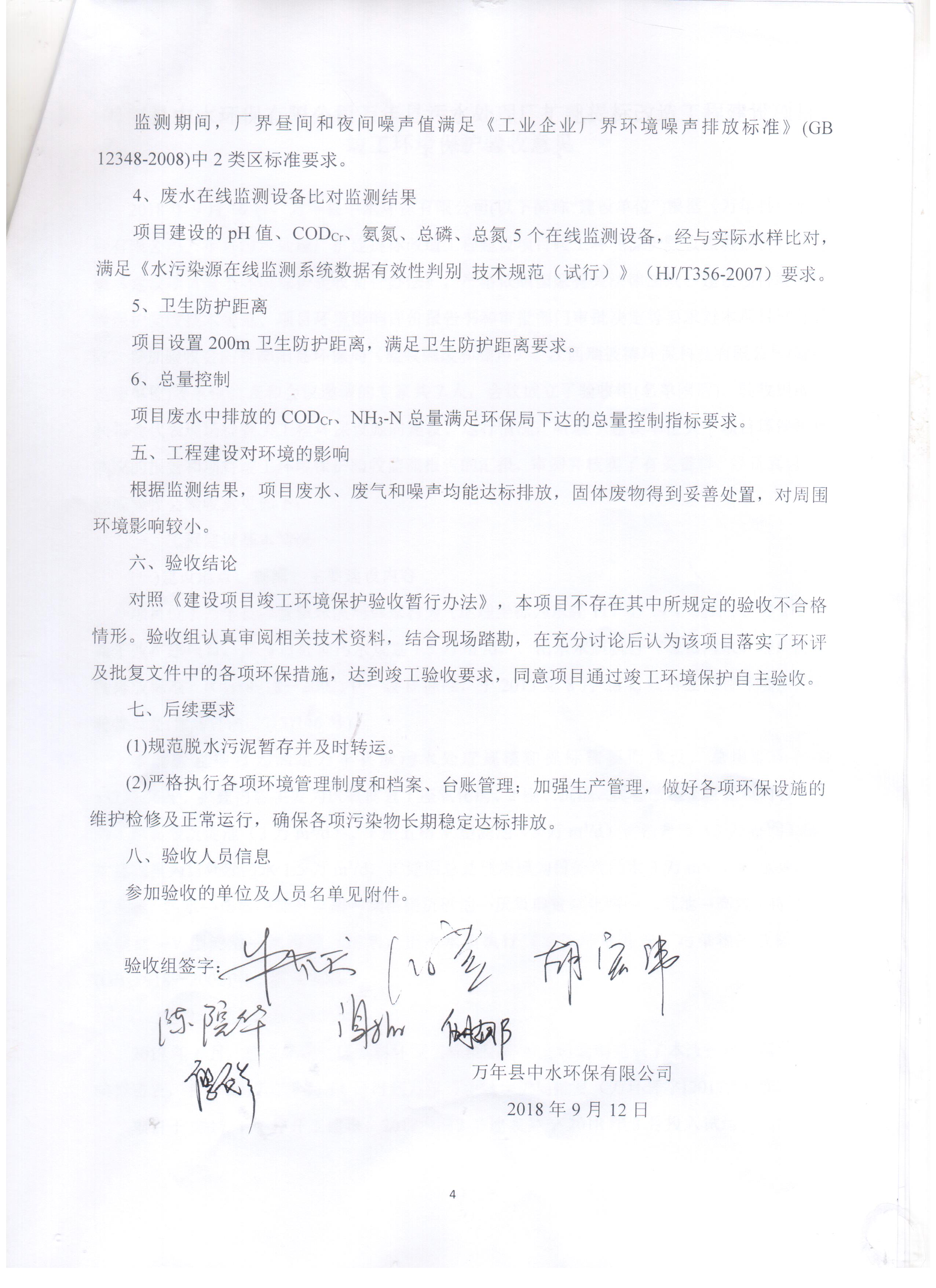 2018年9月16日,萬(wàn)年縣中水環(huán)保有限公司組織召開(kāi)“萬(wàn)年縣污水處理廠(chǎng)擴建提標改造工程項目竣工環(huán)境保護驗收會(huì )”。參加驗收會(huì )的有鄱陽(yáng)縣環(huán)保局(驗收固廢和噪聲)、江西瑞彼德環(huán)??萍加邢薰荆炇毡O測單位)等單位代表和會(huì )議邀請的專(zhuān)家共7人。與會(huì )代表及專(zhuān)家會(huì )前現場(chǎng)檢查了工程環(huán)保設施的建設、運行情況,會(huì )上聽(tīng)取了建設單位關(guān)于項目環(huán)保執行情況的報告和項目竣工環(huán)境保護驗收監測報告的匯報,審閱并核實(shí)了有關(guān)資料,經(jīng)過(guò)認真討論,驗收組認為萬(wàn)年縣中水環(huán)保有限公司萬(wàn)年縣污水處理廠(chǎng)執行了環(huán)境影響評價(jià)制度,項目建設過(guò)程中落實(shí)了環(huán)評報告及批復的要求,嚴格執行了“三同時(shí)”制度,各類(lèi)污染物監測結果符合相關(guān)驗收排放要求,因此,該建設項目驗收合格,現特此進(jìn)行公示。