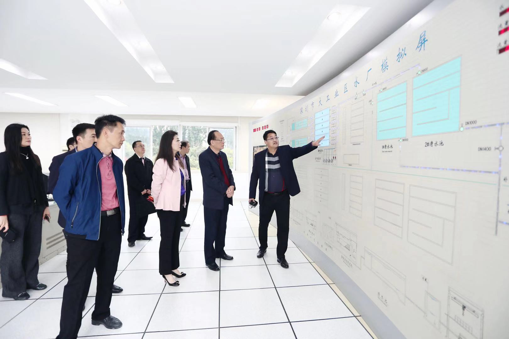 劉學(xué)聰書(shū)記一行首先前往大工業(yè)區水廠(chǎng)進(jìn)行參觀(guān),對水廠(chǎng)制水工藝及現場(chǎng)管理進(jìn)行實(shí)地考察了解,隨后現場(chǎng)觀(guān)摩大工業(yè)區水務(wù)公司排水管網(wǎng)運營(yíng)維護作業(yè)情況。在會(huì )議室座談交流中,工業(yè)區水務(wù)公司總經(jīng)理王春雷詳細介紹了公司供排水一體化運營(yíng)模式的情況、公司近幾年取得的成效及未來(lái)發(fā)展規劃等情況。劉學(xué)聰書(shū)記一行還考察了深圳金達環(huán)境控股有限公司。