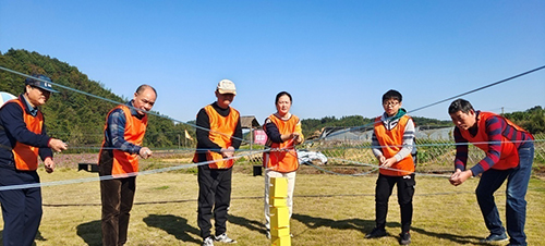 關(guān)于協(xié)作互助,“長(cháng)勺喂湯”的故事可謂廣為流傳。在這次團建活動(dòng)中,全體人員開(kāi)展了一項比“長(cháng)勺喂湯”難度更大的游戲——協(xié)力筑塔,即多人以軟繩同時(shí)控制一個(gè)吊鉤,將一塊塊積木搭建成指定的塔型?;顒?dòng)中,各小組人員齊心協(xié)作,細心操縱,出色完成了任務(wù)。