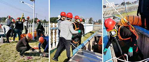 演練過(guò)程中,操作人員拉起安全警戒線(xiàn)、進(jìn)行強制通風(fēng)、開(kāi)展氣體檢測、填寫(xiě)下井作業(yè)票并報批,隨后依次開(kāi)展了人員下井、井內清淤、淤泥提升、淤泥堆放及外運、人員升井、模擬人員受傷現場(chǎng)急救處置、拆除警戒線(xiàn)、清理現場(chǎng)、現場(chǎng)點(diǎn)評等一系列環(huán)節。整個(gè)過(guò)程,全員服從指揮、配合密切,對模擬事故反映迅速、判斷準確,切實(shí)加深了對有限空間作業(yè)危害性的認識,提高了應急處置能力和反應速度,達到了預期效果。