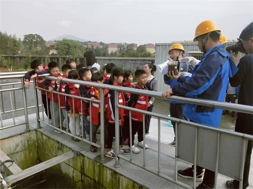 在參觀(guān)生物處理池(氧化溝)時(shí),講解員從池中提取污水給小朋友參觀(guān),不少小朋友好奇問(wèn)到“水為什么這么臟?” 講解員解答到:“生活用水、工業(yè)用水會(huì )使清水受到污染,而污水排放又會(huì )使江河湖泊里的水受污染變臟,人們接觸或者喝臟水,就很可能生病甚至中毒、死亡”。走到進(jìn)出水口時(shí),講解員又現場(chǎng)提取進(jìn)廠(chǎng)水、出廠(chǎng)水向小朋友們進(jìn)行對比展示,小朋友們直觀(guān)看到了污水處理的效果,連說(shuō)“太神奇”。