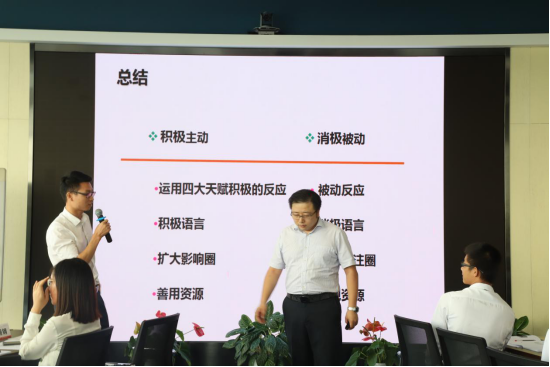 培訓期間,馮南石講師通過(guò)華為、中興、騰訊等具體案例分析,自身經(jīng)歷分享、剖析,現場(chǎng)問(wèn)答互動(dòng)、視頻、做手指操、小組積分、冠軍組發(fā)放獎品等方式,全面、系統、深刻地講授了養成高效能人士的七個(gè)習慣,通過(guò)改變自我習慣不斷提高快速解決問(wèn)題的能力?,F場(chǎng)氛圍輕松和諧,學(xué)員熱情高漲,聚精會(huì )神聆聽(tīng)講課內容,積極主動(dòng)參與小組討論、答題、項目活動(dòng)。
