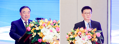 馬蔚華(左)致歡迎辭,徐友軍(右)為大會(huì )講話(huà)